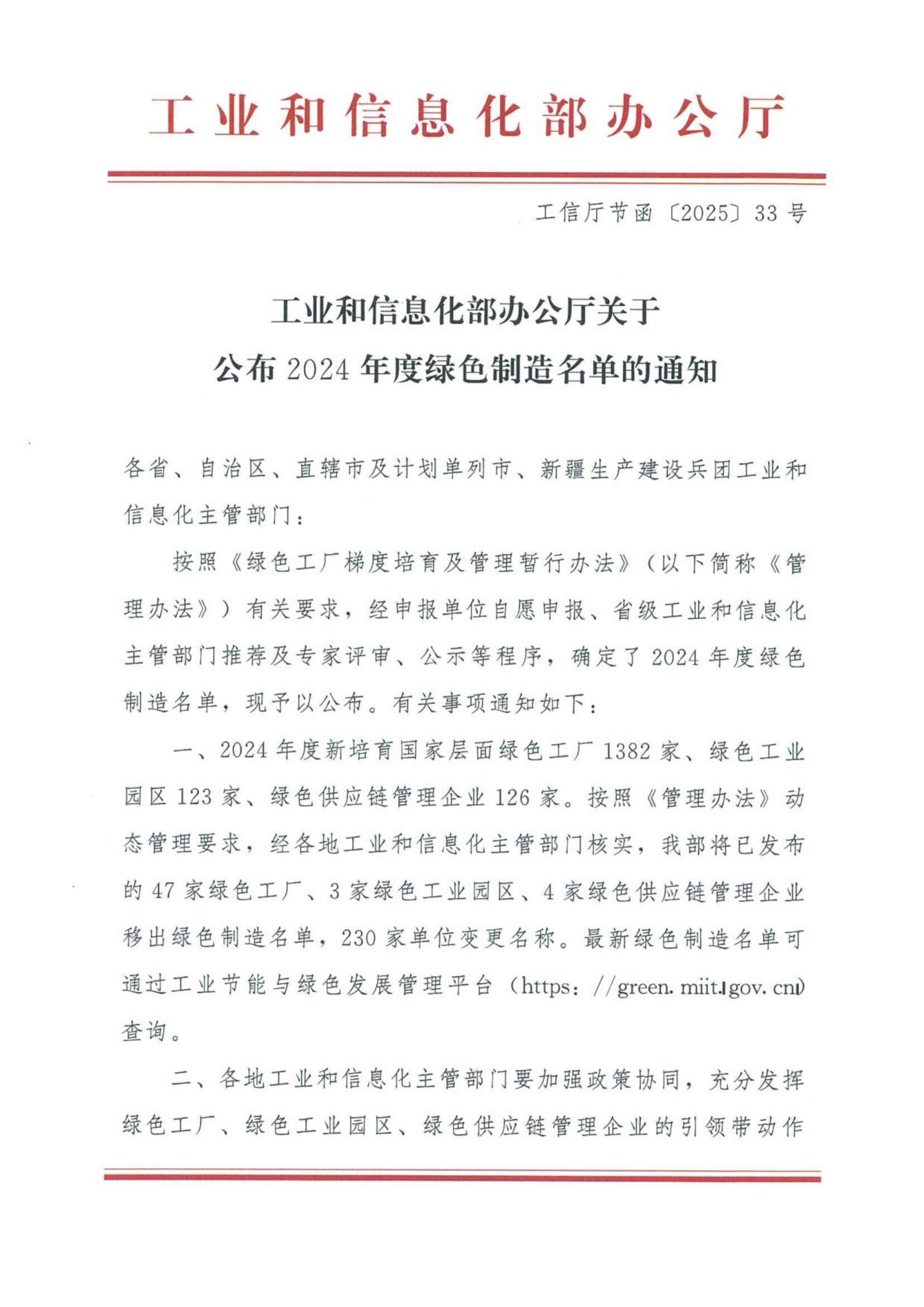 Wellsun Intelligent est fière de figurer sur la liste de la fabrication verte de l'année 2024 du Ministère de l'Industrie et de l'Informatique de la Chine!