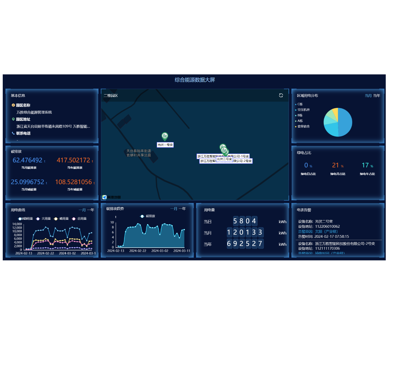 | 1 能耗数据采集 * 支持电表、蒸汽流量计、电磁流量计、压力变送器、温度变送器等多设备、多协议接入;用能数据自动采集,采集频率可按需配置,默认为每小时一次。相关采集数据的配置,能够简便完成。 * 支持基于流量和温度的冷量计算,相关数据最高采集频率不得低于1分钟每次。 * 系统展示被选中车间基本信息,各个分类用能对比,当日逐时趋势,当月逐日趋势和尖峰谷分时段用能图。能源类型可选择电、水、蒸汽等能源类型。统计并展示车间各班次的用能对比。 * 系统对采集的能耗数据进行分类统计,以区域、工厂、部门、车间、班次等维度的用能数据为纵轴,以小时、日、月、年等为横轴,形成数据曲线,直观的为用户展示耗能趋势。 * 系统对采集的能耗数据进行分类统计,从区域、工厂、部门、车间、班次等角度分析耗能占比,展示耗能分布图。 * 异常分析:系统对用能数据进行分析,记录异常用能情况并对用户作出警示。 * 能源流向:通过图形方式直观显示当前能源消耗流向。 * 损耗分析:在能源流线图上分析展示各线路上能源损耗情况。 4 安全监控 * 告警方案管理:系统提供告警方案配置功能,配置在设备产生告警信息之后的处理方式(短信、电话通知相关责任人),用户可按需进行配置。 * 告警阈值设置:系统可远程对设备中的事件触发条件进行配置,如过压、过流等事件。 * 实时监控:系统实时监控设备产生的告警信息,在系统界面上进行告警提示,同时通过配置的告警方案通知相关责任人。 * 根据录入用电标准值和当月产量(或者通过与企业ERP或MES系统接口获得),自动核算公司内各部门能耗KPI是否超限,计算出与标准值的百分比,作为企业对各部门能耗KPI的考核依据。 * 对KPI超限的部门进行预警信息推送。 * 系统可设置能耗单价,并通过报表方式显示日、月、年能耗账单。 * 设备档案管理:对水电气热等表计设备、电磁流量计、温度计等能耗监测设备档案信息进行维护,用户可按需选择一种或多种设备。 * 对设备进行日常运维管理,包括监控设备告警故障信息、在线情况和采集数据情况。 |