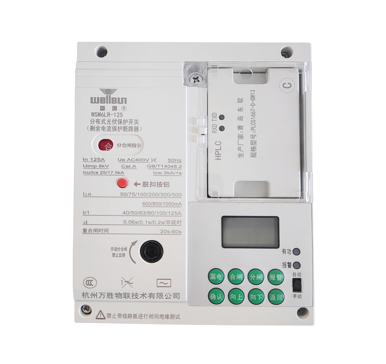 具有远程及本地开合闸功能,当有剩余电流超限发生时会自动跳闸,剩余电流超限解除后自动重合闸,其余故障均需手动合闸。